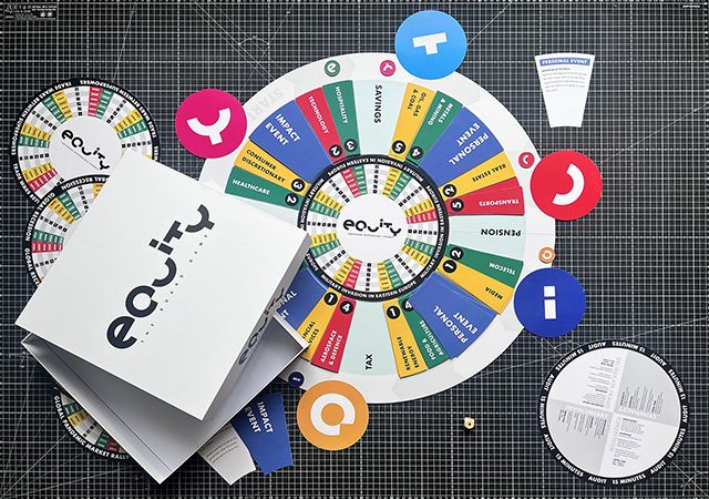 Equity is an award-winning educational initiative fusing pedagogy, realism and gameplay to make responsible financial literacy – founded on environmental and social responsibility – more inclusive and accessible. Players discover the power of financial markets by competing to build profitable yet responsible investment portfolios, inspired by the 1976 serious game Bourse: Le Jeu de la Finance by Editions Fenwick and economist Bertrand Jacquillat.